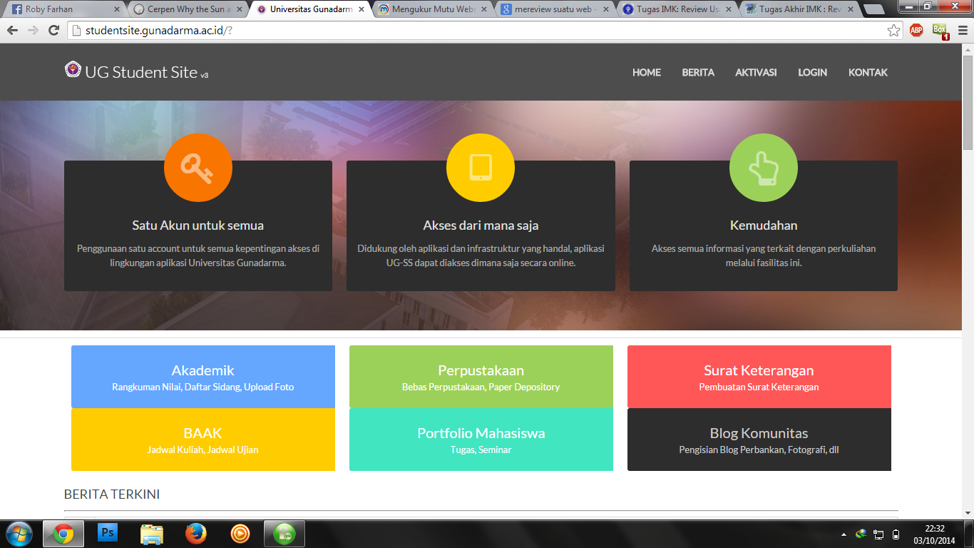 terlihat beberapa berita yang bersangkutan dengan aktivitas di kampus